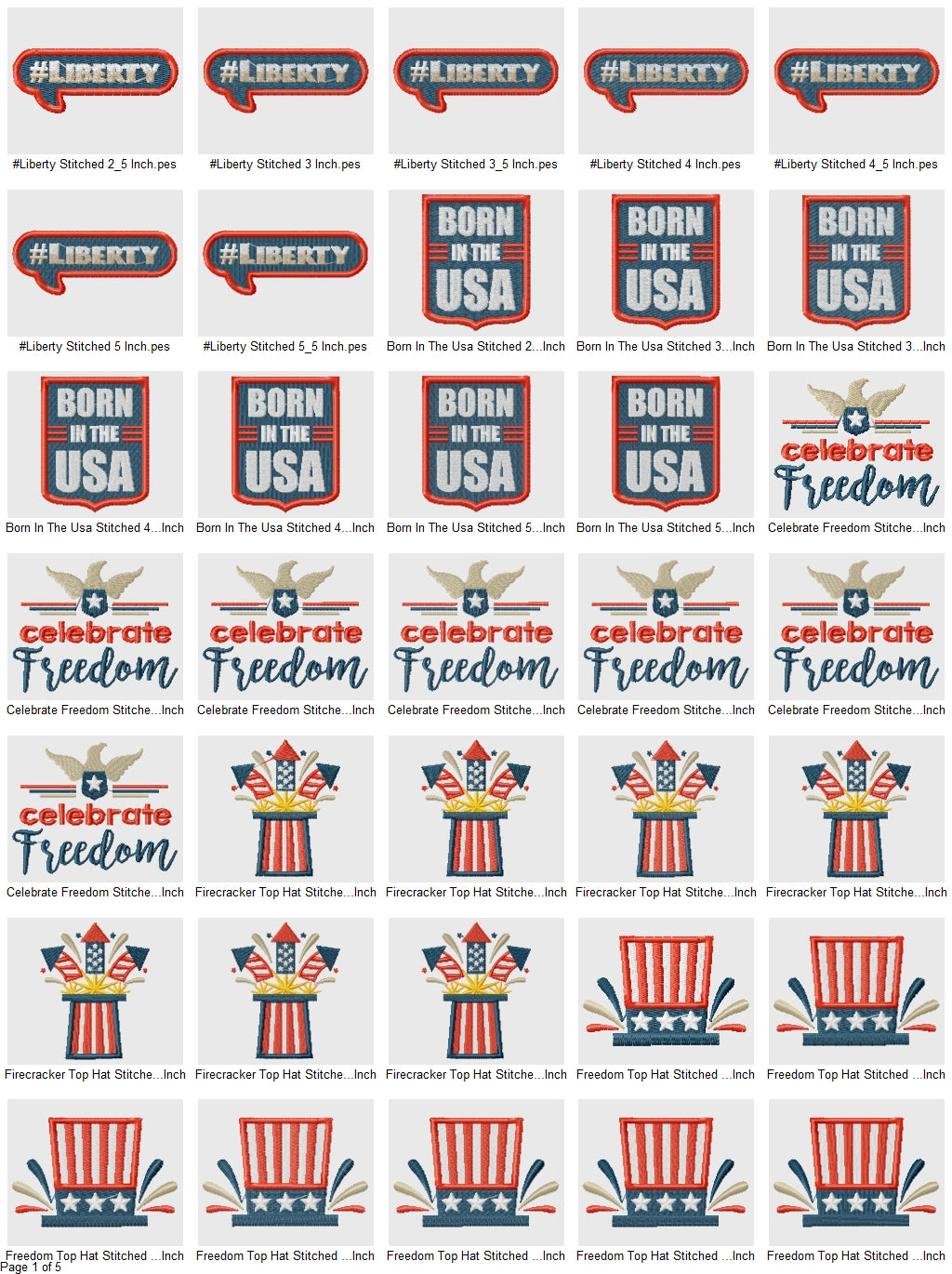 The 4 Of July – 24 Designs Pack includes a complete selection of patriotic motifs, from classic lettering to dynamic Independence Day elements. Each design has been carefully digitized to ensure perfect stitch balance, minimal thread jumps, and excellent results on a wide range of fabrics.