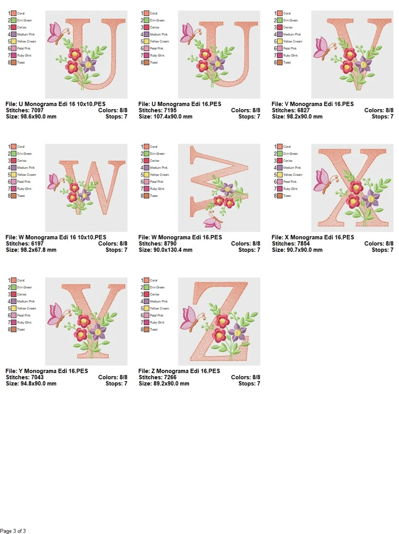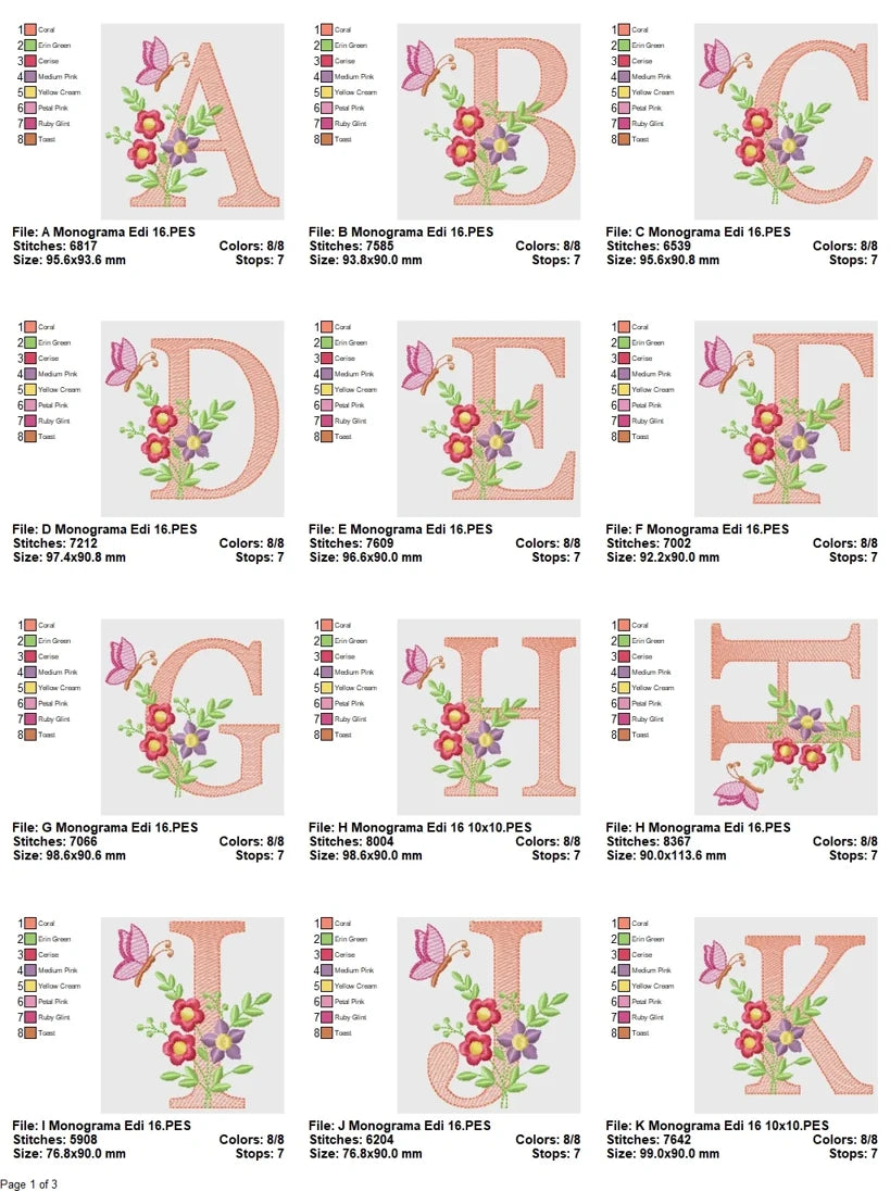 The Butterfly Bloom Monogram Embroidery Alphabet Set is a joyful expression of creativity and color. Each letter is surrounded by blooming flowers and playful butterflies, offering a bright and elegant touch to any embroidery project. This alphabet set is perfect for adding charm to garments, accessories, nursery items, and gifts – wherever softness and personality are needed.