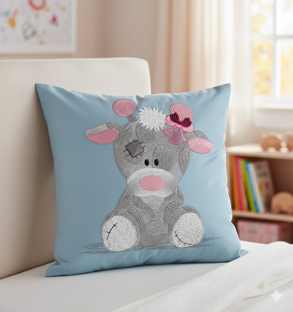 Every curve was refined with care, and each filled area was tested repeatedly to ensure thread density, balance, and clarity. Our team carried out several rounds of test-stitching on different fabrics — from plush minky to crisp cotton — to guarantee flawless results for embroiderers of all skill levels. The result is a baby giraffe with soulful eyes, a playful bow, and a comforting softness that adds instant charm to every project.