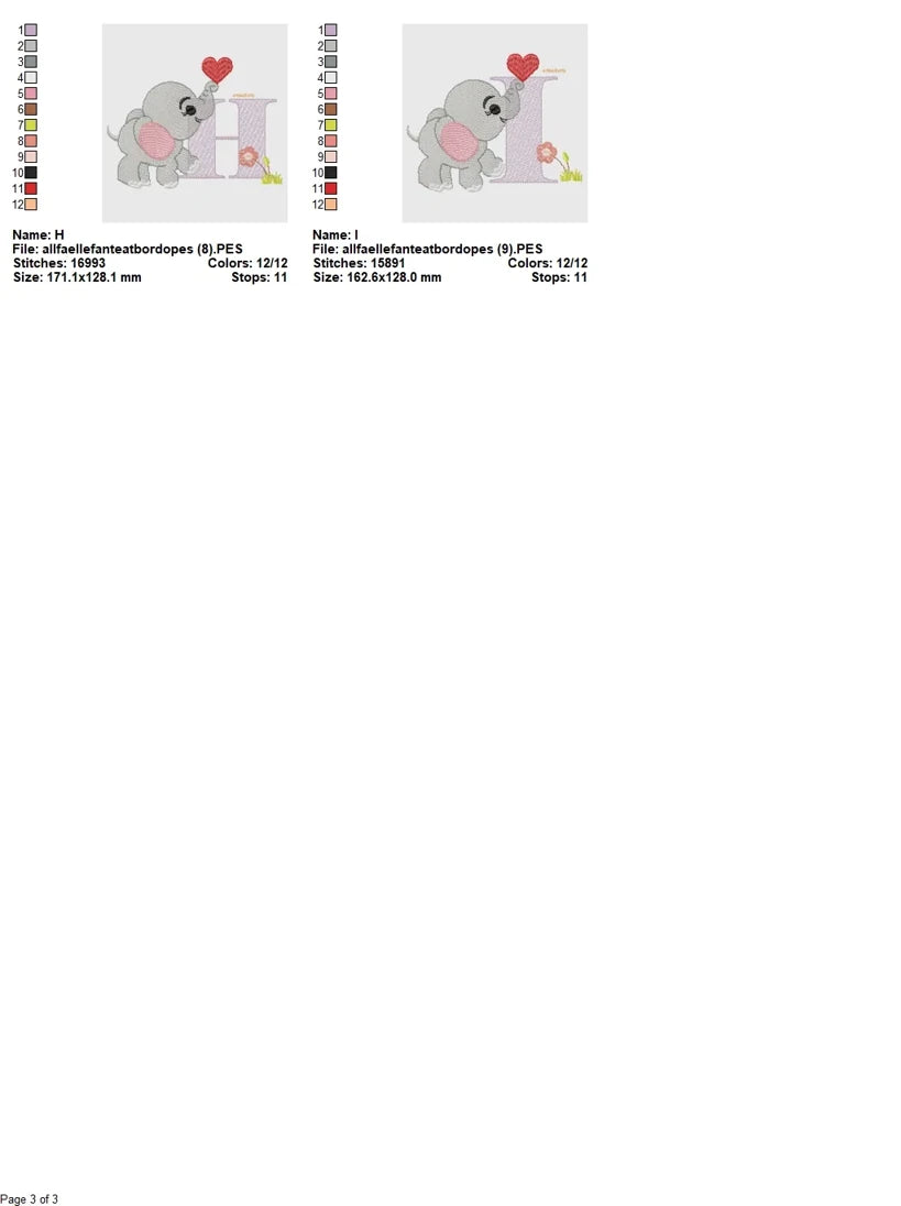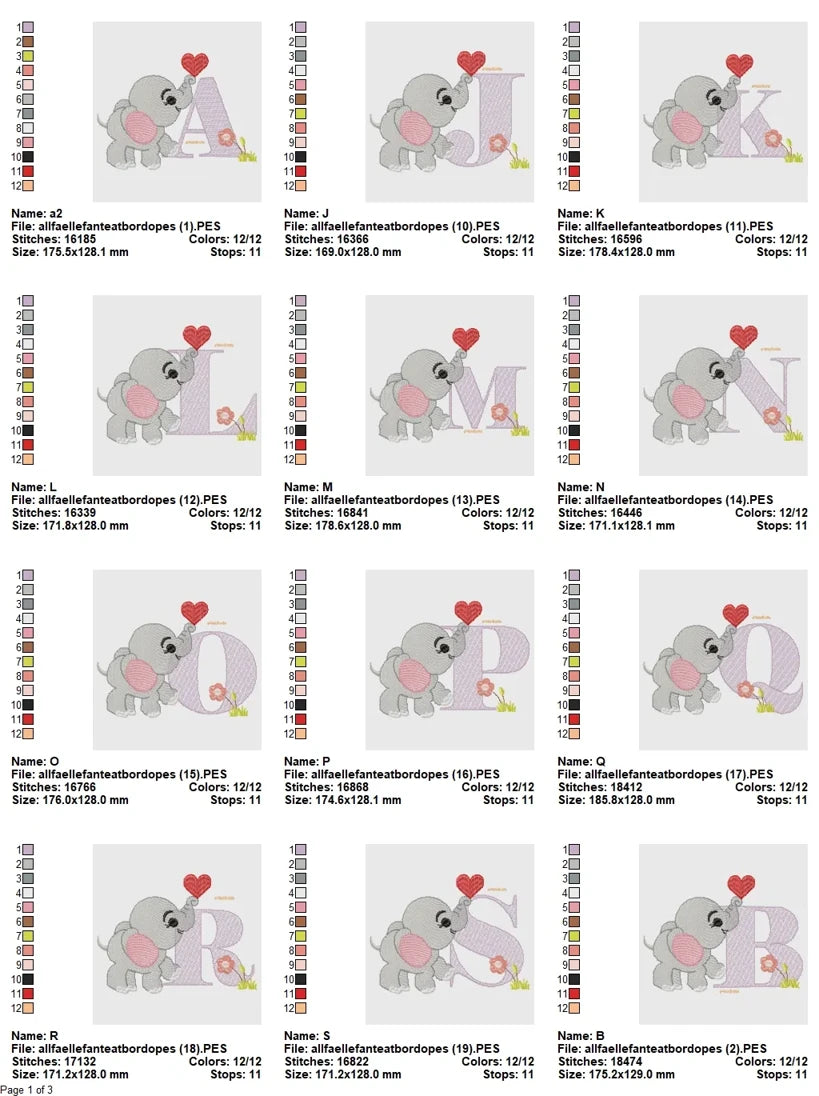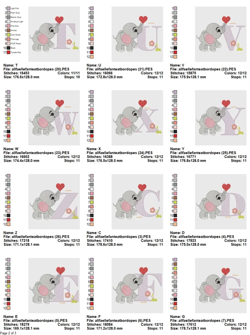 Professionally digitized and thoroughly tested by embroidery experts, the Love Elephant Baby Alphabet Embroidery Set ensures excellent stitching results across common machine types and fabrics. With up to 18,500 stitches per letter, each design maintains structural balance, stitch clarity, and consistent flow—perfect for both beginners and experienced embroiderers.