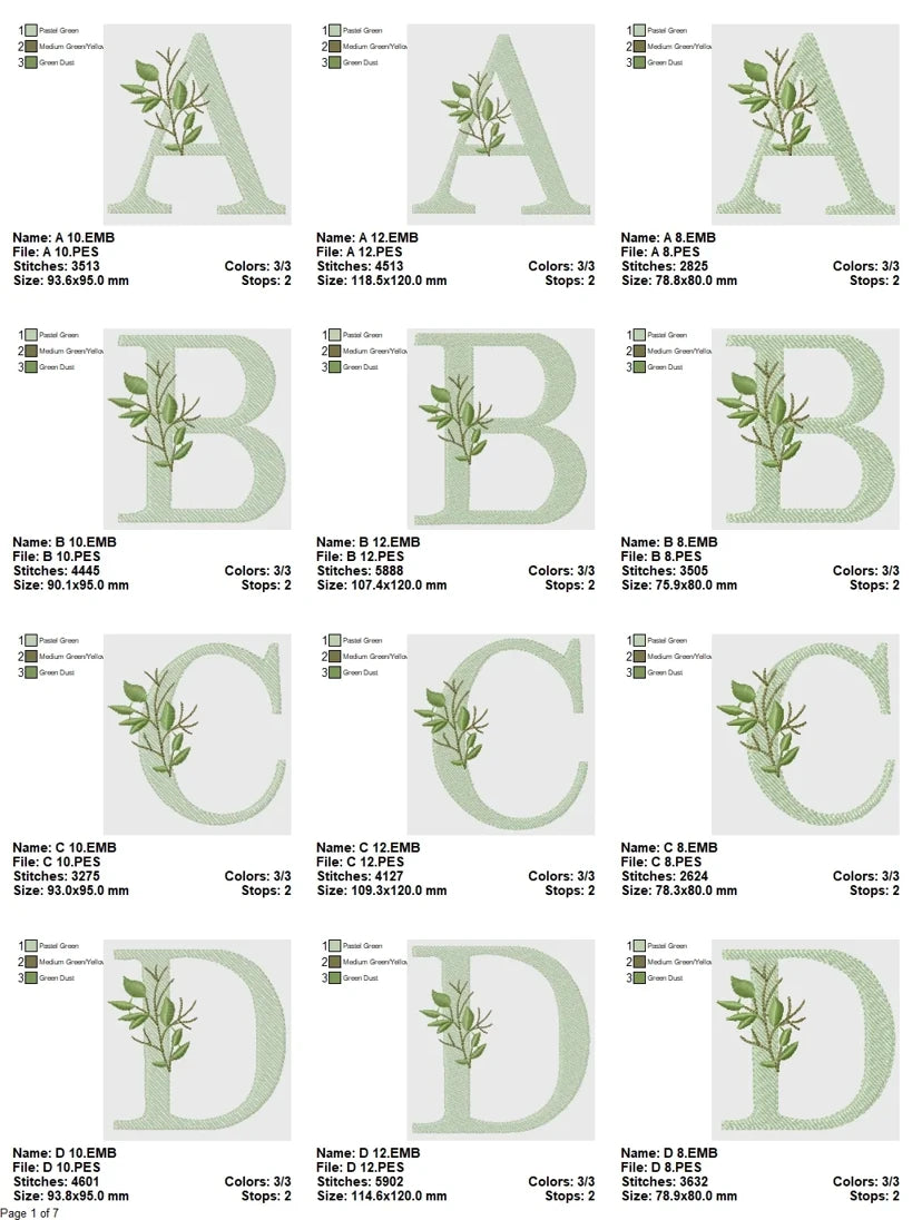 Digitized in a harmonious palette of sage tones, earthy greens, and soft beige textures, the designs blend effortlessly into natural fabrics like linen, cotton, or muslin. The result is a monogram that feels timeless, tranquil, and deeply connected to nature. Whether you’re embellishing spa accessories, wedding stationery, nursery decor, or handmade products, this alphabet brings an organic and thoughtful aesthetic to every stitch.