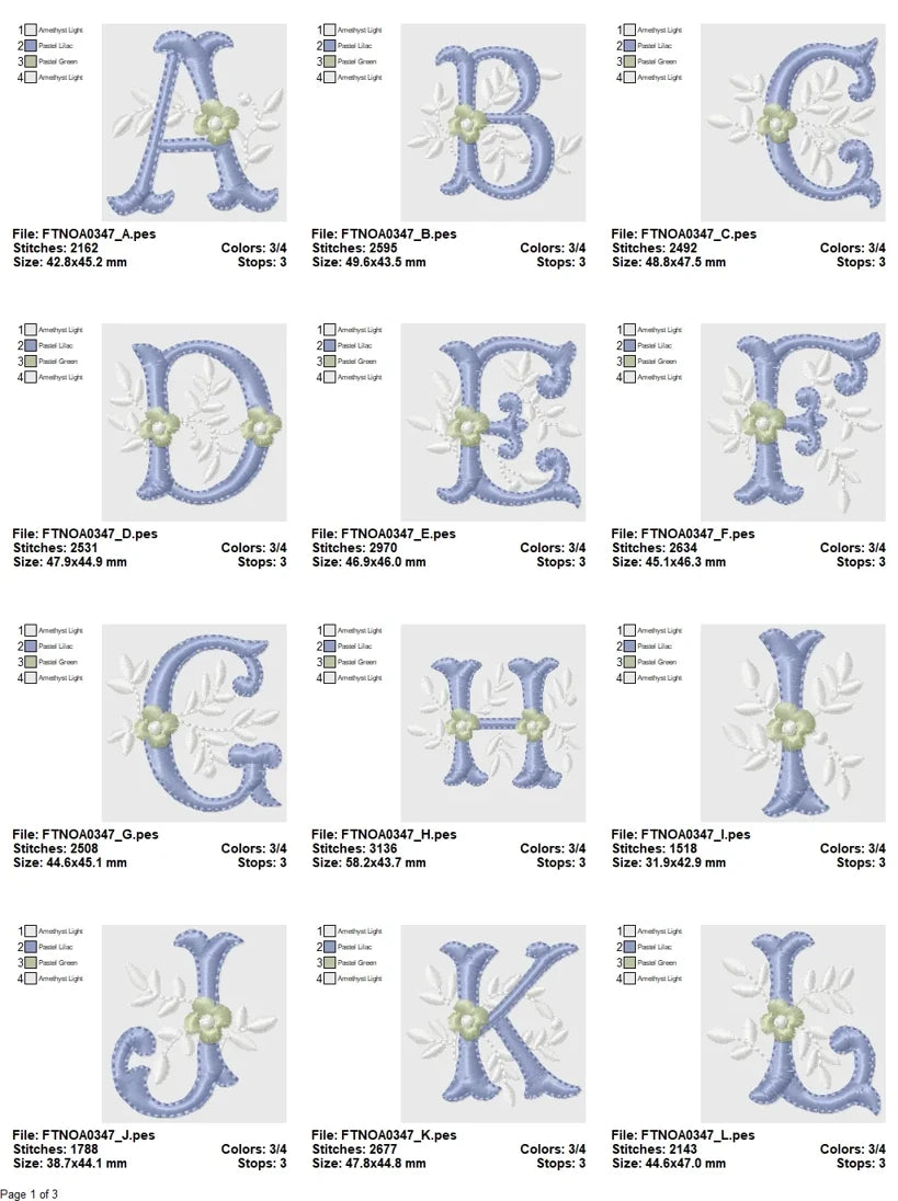The Pastel Satin Floral Alphabet Embroidery Set was designed to embody softness and femininity while maintaining the high stitch quality expected of professional embroidery. Our digitizing team studied vintage monograms and botanical sketches, refining every leaf, petal, and curve of the satin lettering. Each file was tested on a variety of fabrics to ensure both stability and beauty. The result is a timeless set that offers just the right amount of charm, whether you’re crafting a baby shower gift or embellishing an heirloom piece. This set is not just pretty—it’s made to perform and last.