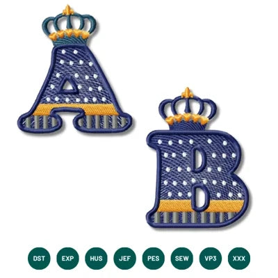 The Royal Crown Alphabet Embroidery Set is a celebration of majesty, tradition, and timeless refinement. Each capital letter is adorned with a beautifully detailed embroidered crown, sitting regally atop a bold letterform decorated with regal textures such as stripes, dots, and gold accents. Designed to evoke royal heraldry and a touch of childhood magic, this alphabet collection is the perfect choice for celebratory gifts, baby keepsakes, royal-themed decor, and high-end personalization.