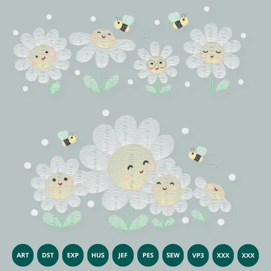 Sunshine, whimsy, and a touch of buzzing charm come together in the Smiling Bee Border Embroidery Pack—a delightful collection designed to infuse every project with happiness and personality. Featuring playful daisy blooms with cheerful faces, accompanied by buzzing bees and floating bubbles, this pack is a celebration of childlike wonder and seasonal charm.