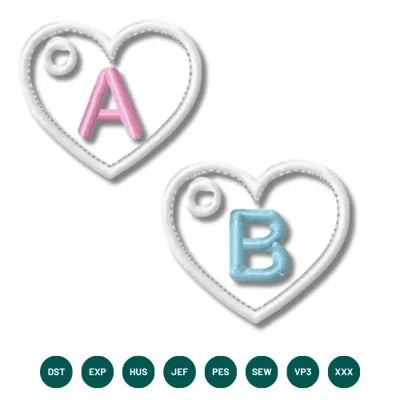 Featuring a clean satin fill and satin border, the letters are bold enough to stand out, yet sweetly softened by the surrounding heart frame. The built-in eyelet makes these designs perfect for snap tabs or rings, eliminating the need for extra editing. Thoughtfully digitized for minimal thread jumps and optimized for 4x4 hoops, the Sweetheart Keychain Alphabet Embroidery Set ensures smooth stitching on felt, vinyl, cork, or lightweight cotton.