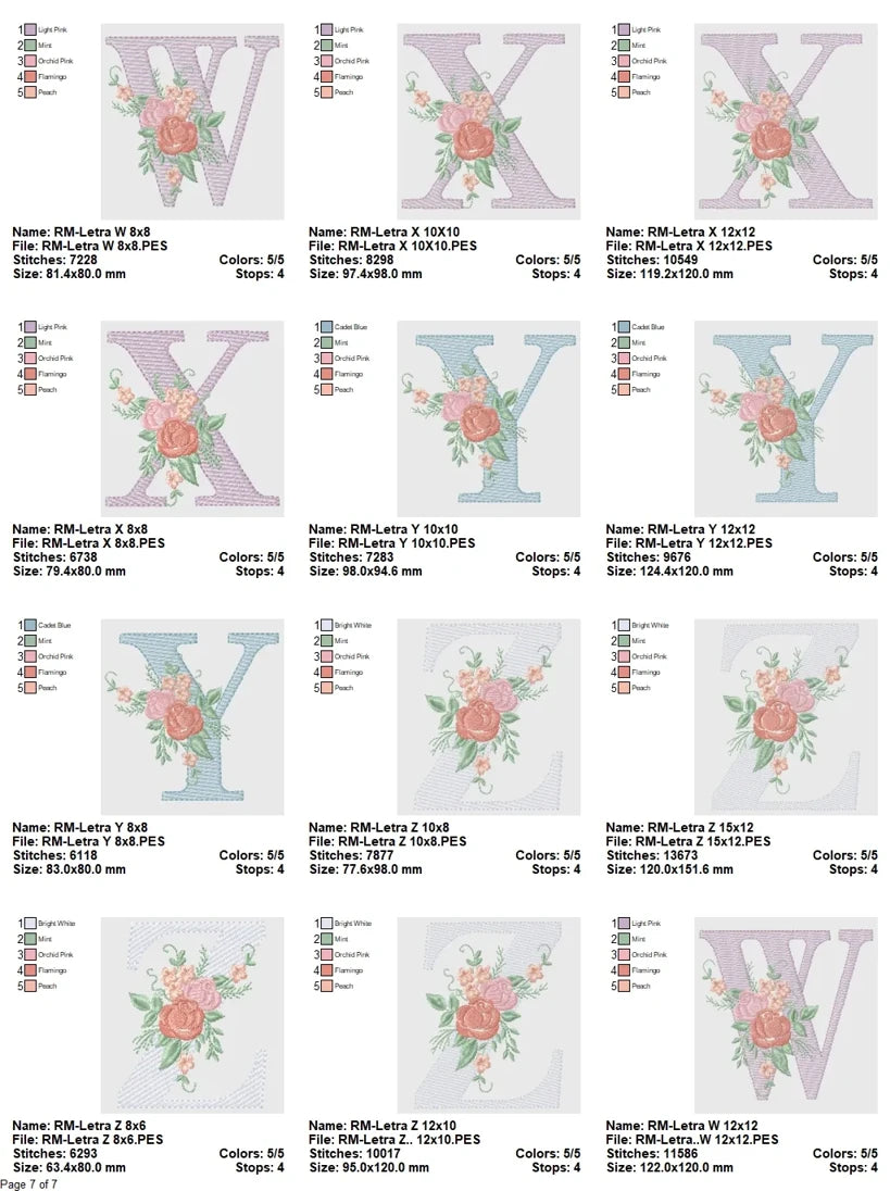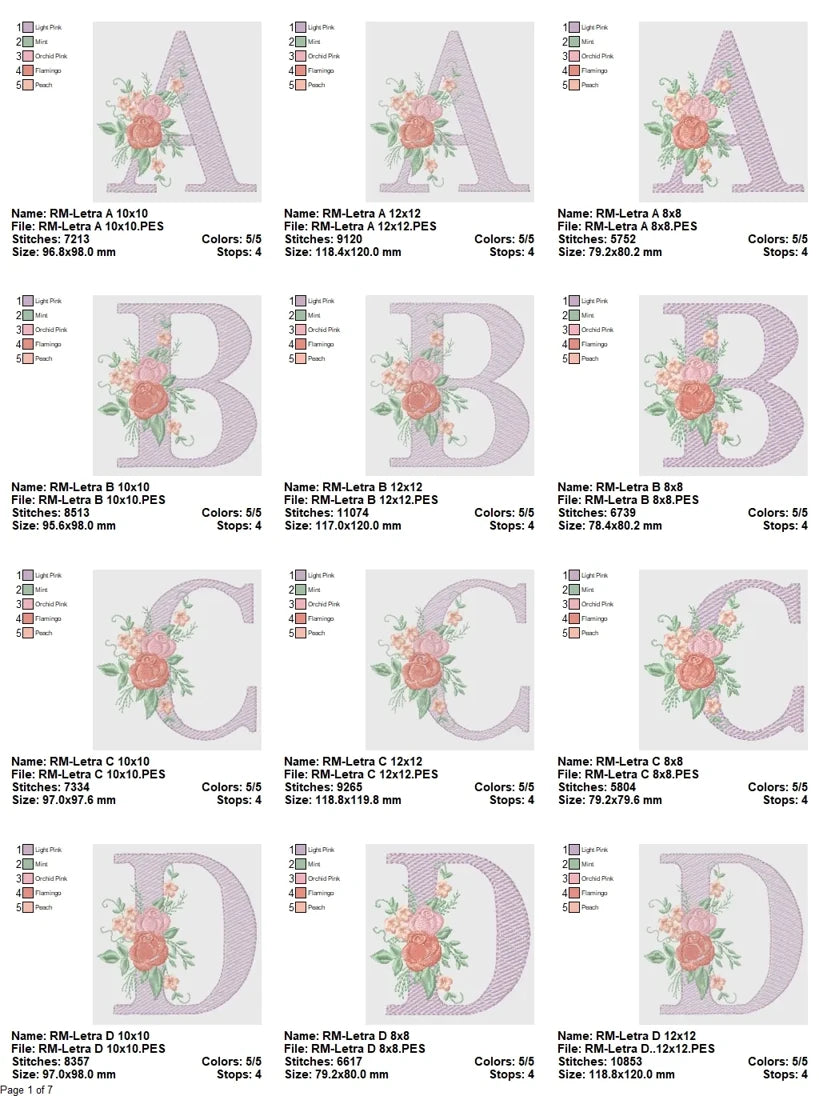 Every design has been meticulously digitized and tested to ensure smooth stitching, clean outlines, and color efficiency—ideal for both professional embroiderers and passionate hobbyists. Balanced placement of the floral accents ensures stitch stability while maintaining an elegant silhouette, allowing each letter to shine on everything from handkerchiefs to hoop art and special occasion keepsakes.