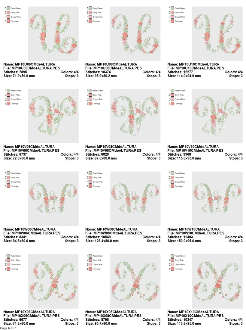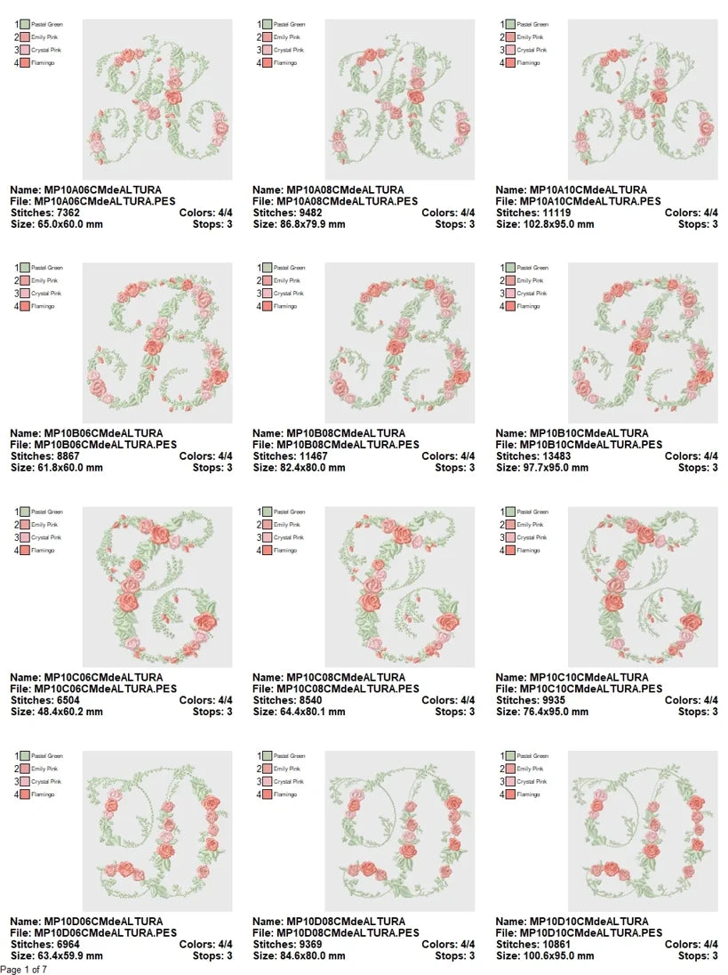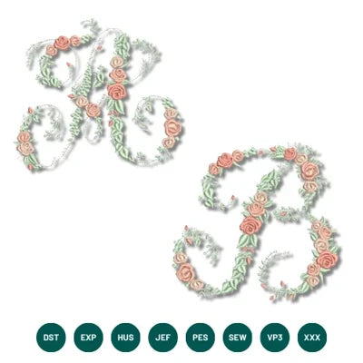 Designed with balance and stitchability in mind, each letter from A to Z is adorned with meticulously placed roses and leaf details that swirl around ornate serif shapes. Subtle pastel shades—soft pinks, greens, and creams—give the collection a fresh garden-inspired appeal without overwhelming the silhouette of the monogram. Whether you're working on wedding gifts, nursery décor, embroidered invitations, or custom accessories, this alphabet will lend a poetic softness and artisanal flair to every creation.